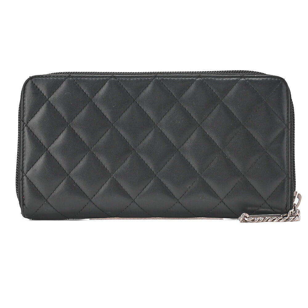 Erweitern Sie Ihre Accessoire-Auswahl mit der CHANEL Cambon Line Matelasse Round Long Wallet – einer atemberaubenden Kombination aus Eleganz und Funktionalität. Gefertigt aus hochwertigem Kalbsleder in edlem Schwarz, besticht diese luxuriöse Geldbörse mit exquisiten Silberbeschlägen und ist somit das perfekte Accessoire für jeden Anlass.