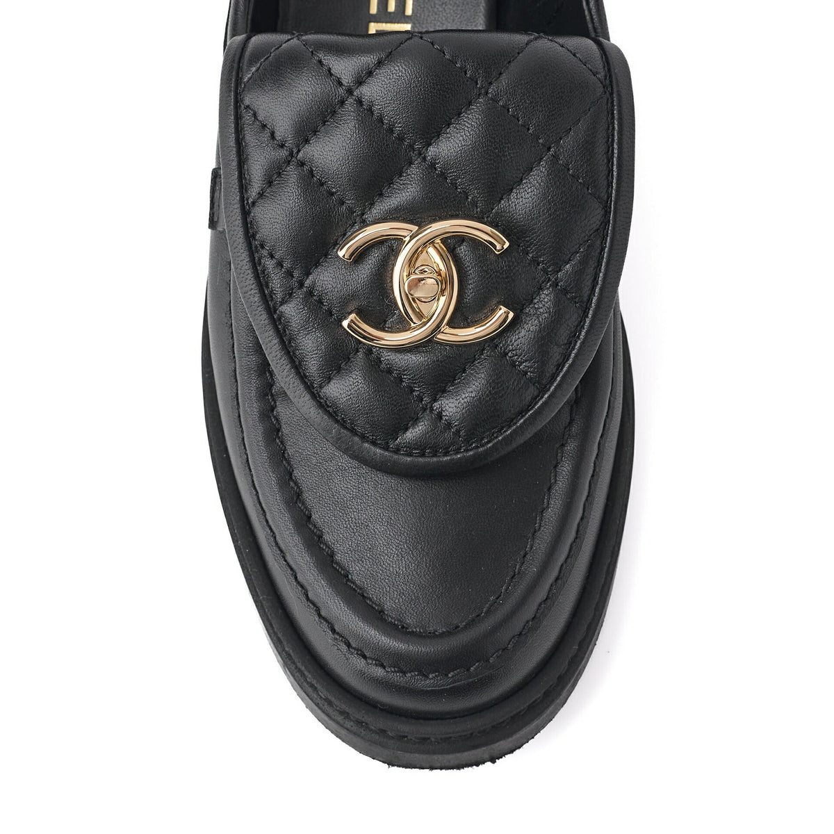 Diese Loafer eignen sich ideal für Freizeitausflüge und formelle Anlässe und sind eine vielseitige Ergänzung für jede Garderobe. Das ikonische Drehverschluss-Detail unterstreicht nicht nur die Gesamtästhetik, sondern repräsentiert auch den High-Fashion-Status von CHANEL.