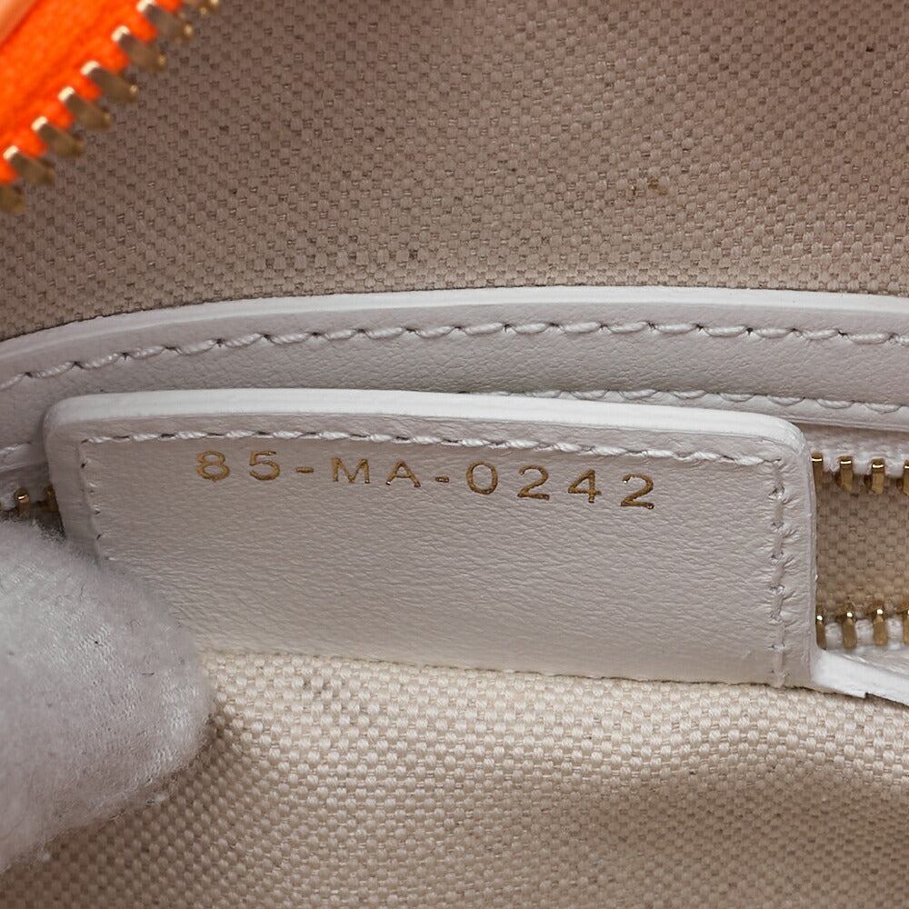 Erweitern Sie Ihre Accessoire-Auswahl mit der Dior 2WAY Mini Boston Bag – einer atemberaubenden Mischung aus Luxus und Funktionalität. Diese leuchtend orange-weiße Handtasche aus hochwertigem Leder und Gummi ist perfekt für jede stilbewusste Frau, die ein Statement setzen möchte. Die exquisiten Goldbeschläge verleihen ihr einen Hauch von Eleganz und machen sie zu einem Blickfang sowohl für den Alltag als auch für besondere Anlässe.