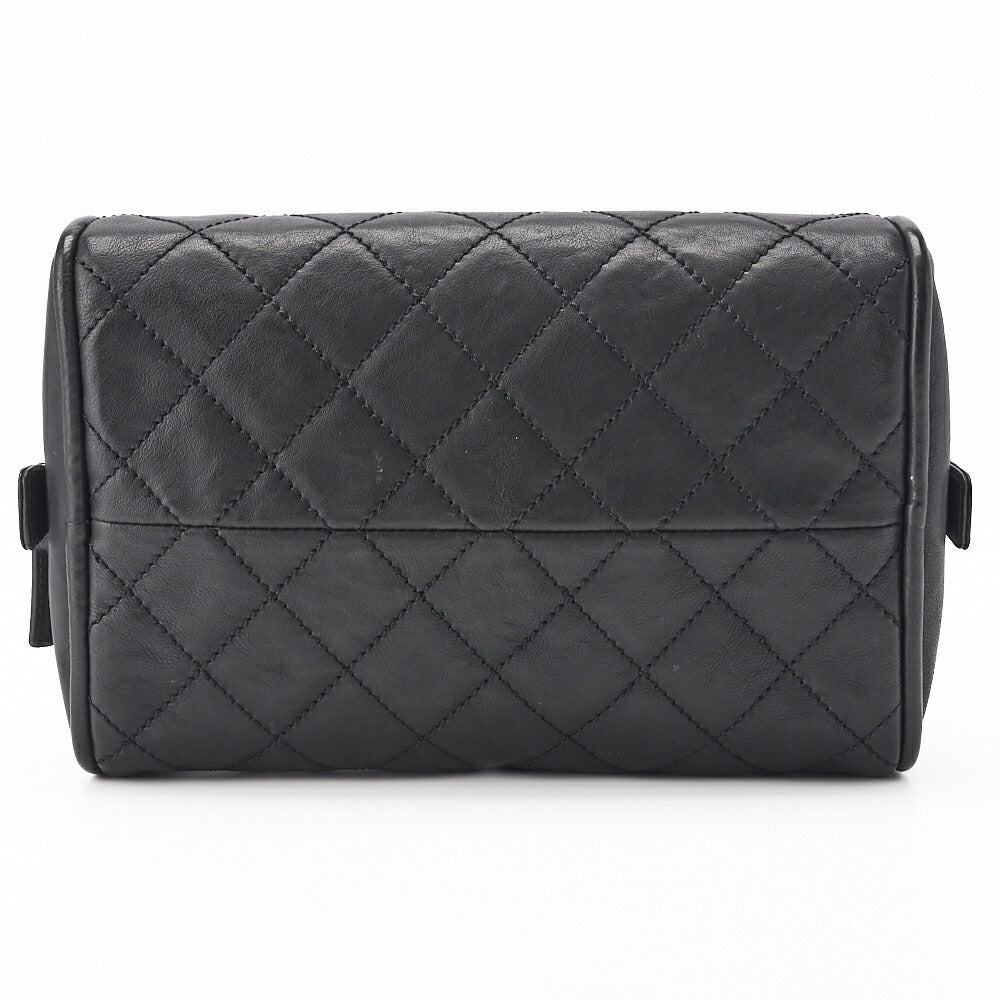 Pre-Owned Mini Boston Bag Matelassé Kalbsleder Schwarz Silberfarbene Hardware Pre-Owned