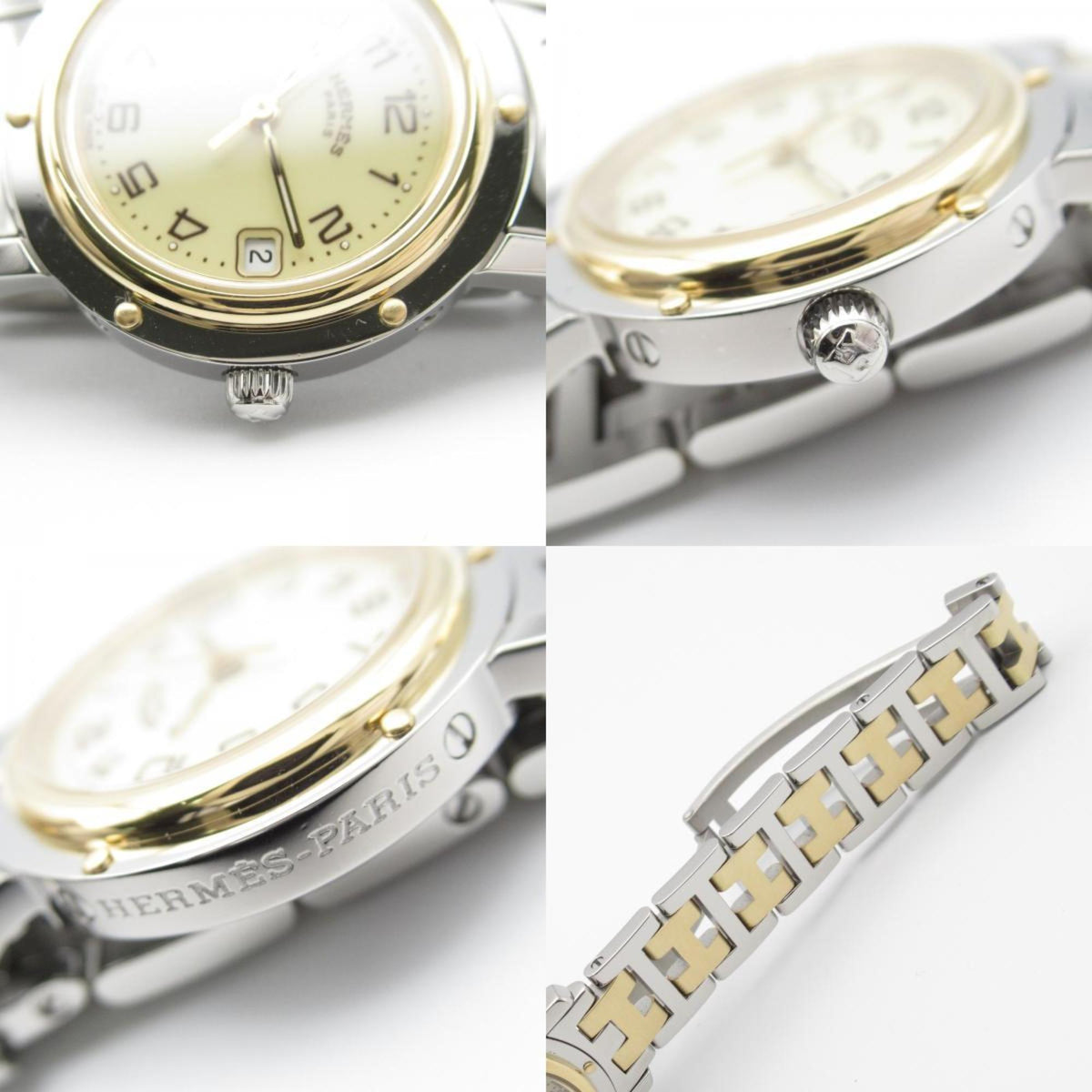 Gebrauchte Hermes Clipper Uhr GP (vergoldet) Edelstahl Damen Elfenbein CL4.220