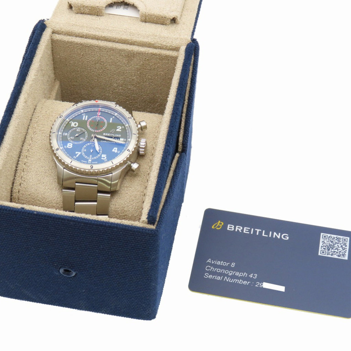 Pre-Owned Like new Breitling Aviator 8 Chronograph 43 A13316 Automatic Stainless Steel Watch, Green, 0181, BREITLING, Men's