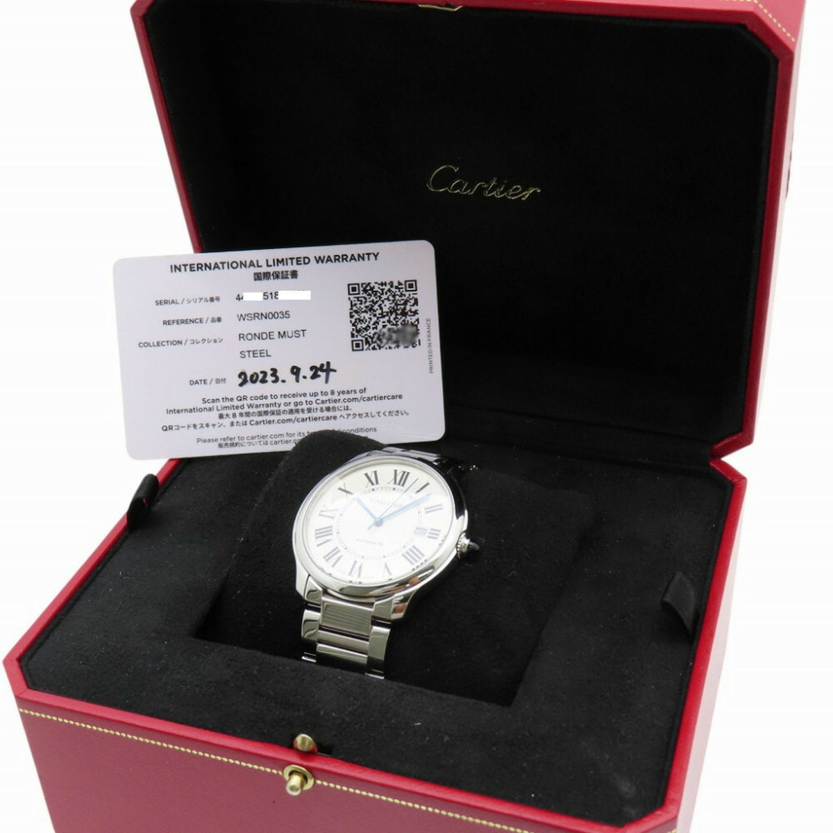 Pre-Owned Like new Cartier Rondemust de WSRN0035 automatic watch in stainless steel and silver, model 1572CARTIER, men's