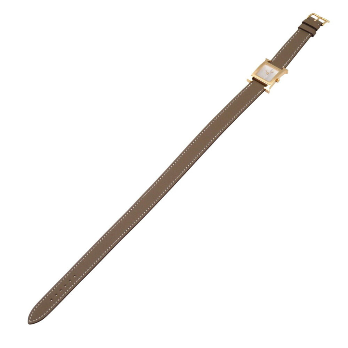 Gebrauchte wie neue Hermes H Uhr Double Tour HH1.202c Quarz Armbanduhr SS/Leder Silber U Stempel 1101HERMES Damen
