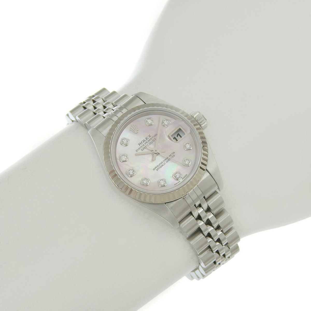 Gebrauchte, neuwertige Rolex Datejust P-Serie (ca. 2000-2001) 79174NG Rosa Muschelzifferblatt K18WG/SS Automatischer Aufzug