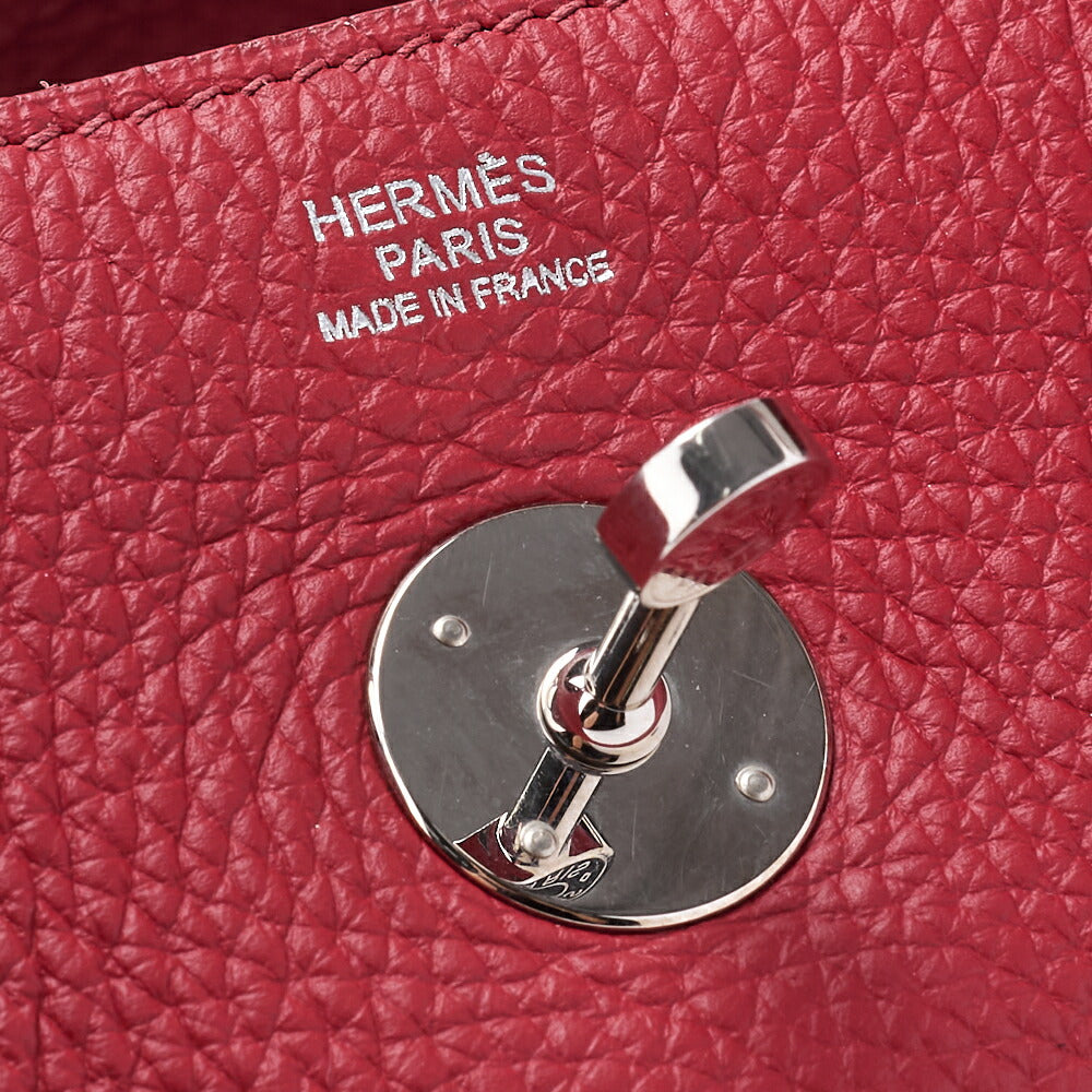 Wir präsentieren die HERMES Hermes Lindy 30 2way Schultertasche – eine raffinierte Kombination aus Stil und Funktionalität. Gefertigt aus luxuriösem Tryon Clemence Leder in der atemberaubenden Farbe Rouge Casaque , besticht dieses gebrauchte Schmuckstück durch elegante silberne Metallbeschläge , die seinen zeitlosen Reiz unterstreichen.