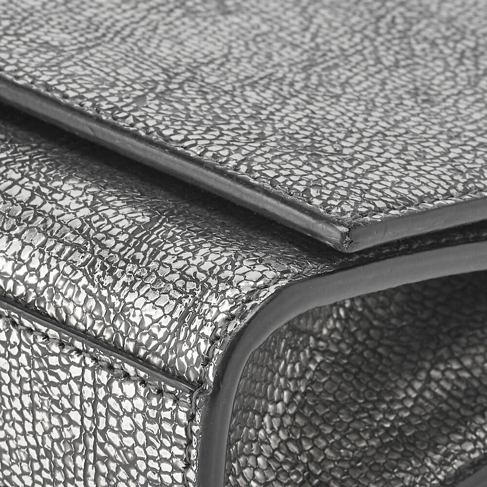 Gebrauchte Laurent Umhängetasche, Magnetverschluss, Kettenschulter, Leder, Silber, Silberfarbene Hardware, Gebraucht
