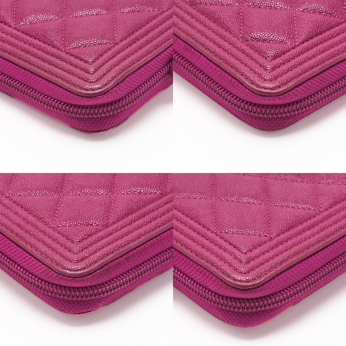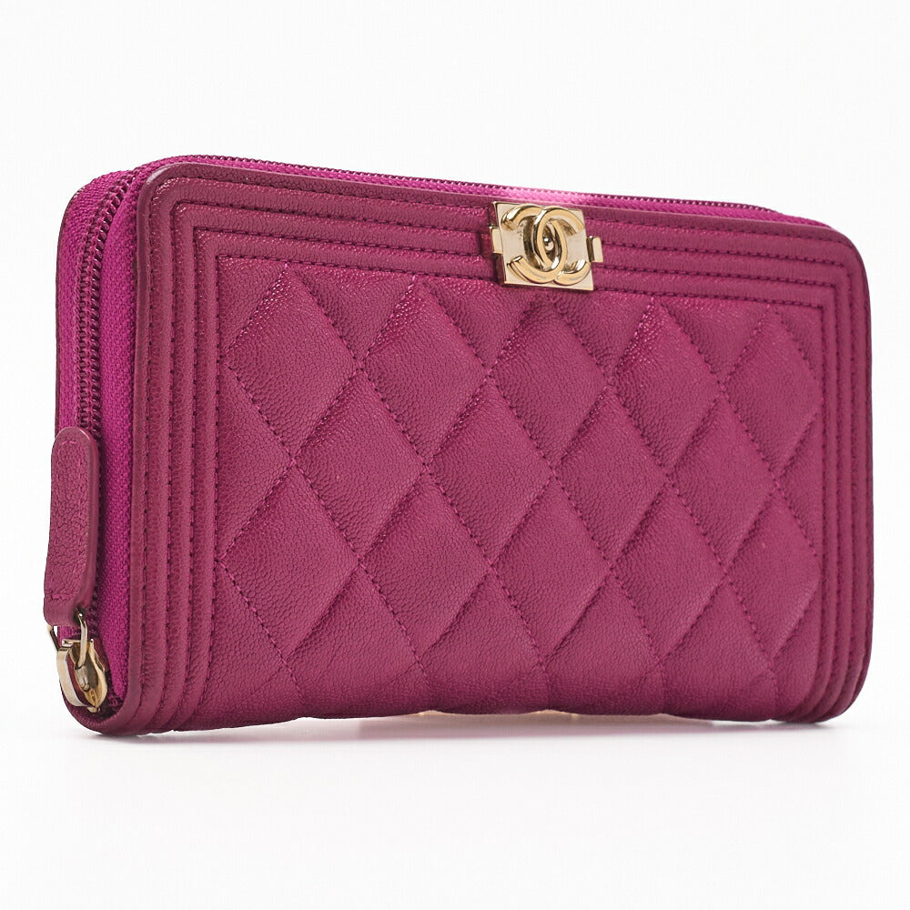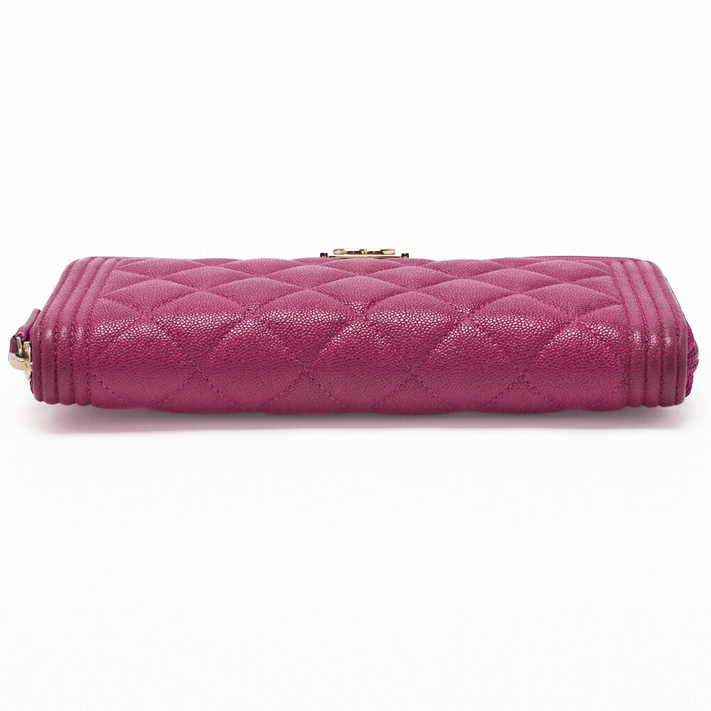 Erweitern Sie Ihre Accessoire-Auswahl mit der atemberaubenden CHANEL Matelasse Boy Chanel Round Long Wallet aus luxuriösem Caviar Skin in bezauberndem Rosaton , verziert mit exquisiten Goldbeschlägen . Diese elegante Geldbörse ist nicht nur ein modisches Statement; sie vereint Funktionalität und Luxus und ist ein Must-have für jede anspruchsvolle Frau.