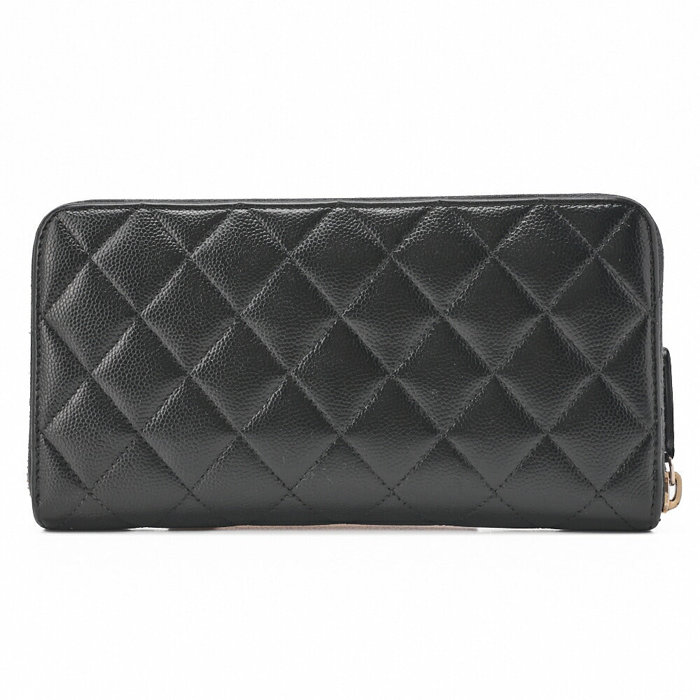 Entdecken Sie die exquisite CHANEL Chanel Matelassé Round Long Wallet aus luxuriösem Kaviarleder in zeitlosem Schwarz mit eleganten Goldbeschlägen. Diese hochwertige Damenbrieftasche vereint Eleganz und Funktionalität und ist ein Must-have für stilbewusste Frauen, die Wert auf hochwertige Handwerkskunst legen.