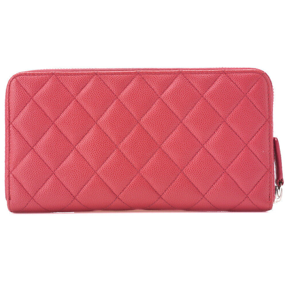 Pre-Owned Lange Geldbörse Matelassé Kaviar Leder Rosa Silberfarbene Hardware Pre-Owned