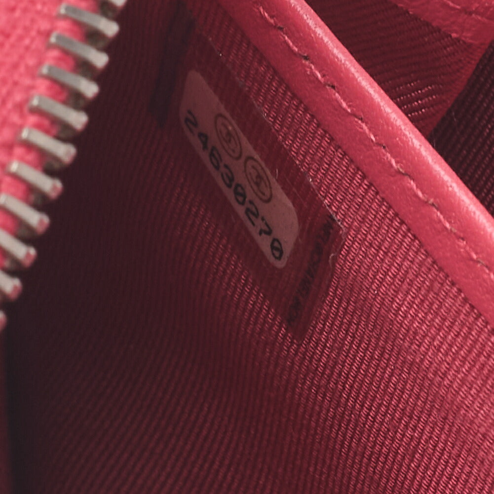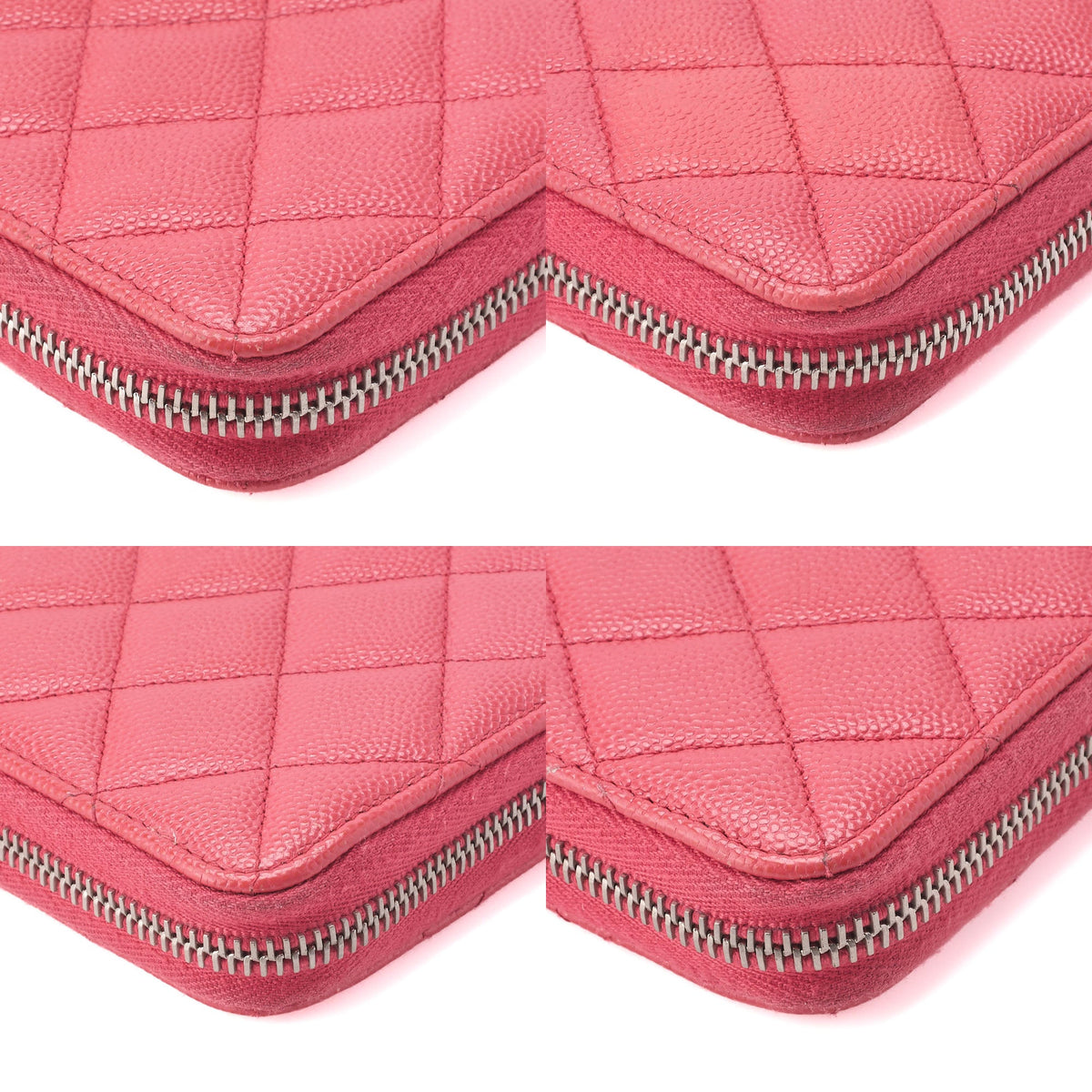 Erweitern Sie Ihre Accessoire-Auswahl mit der CHANEL Matelassé Round Long Wallet in exquisitem Caviar Skin Pink mit eleganten Silberbeschlägen. Diese atemberaubende Damenbrieftasche ist nicht nur ein modisches Statement, sondern auch eine praktische Lösung für Ihren Alltag.