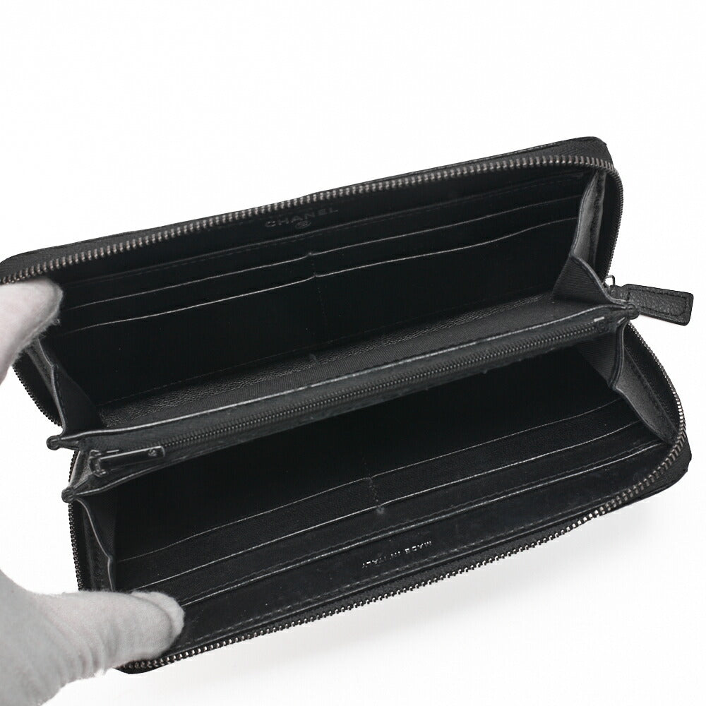 Erweitern Sie Ihre Accessoire-Auswahl mit der exquisiten CHANEL Matelassé Round Long Wallet . Sie ist aus luxuriösem Lammleder in zeitlosem Schwarz gefertigt und mit schicken schwarzen Metallbeschlägen versehen. Diese elegante Geldbörse verkörpert nicht nur Raffinesse, sondern bietet auch unübertroffene Funktionalität für die moderne Frau.