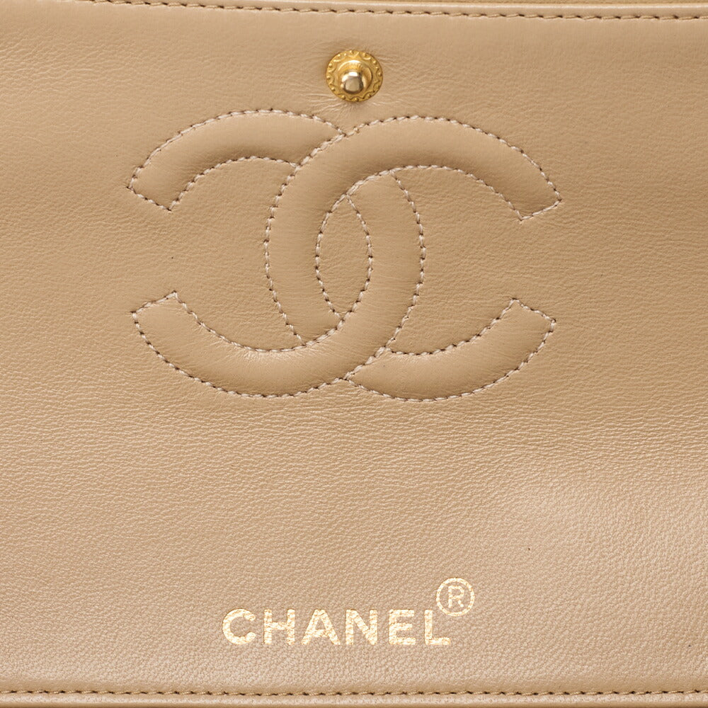- Design: Matelassé quilted double-flap silhouette in beige lambskin