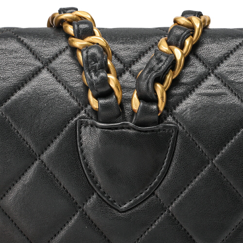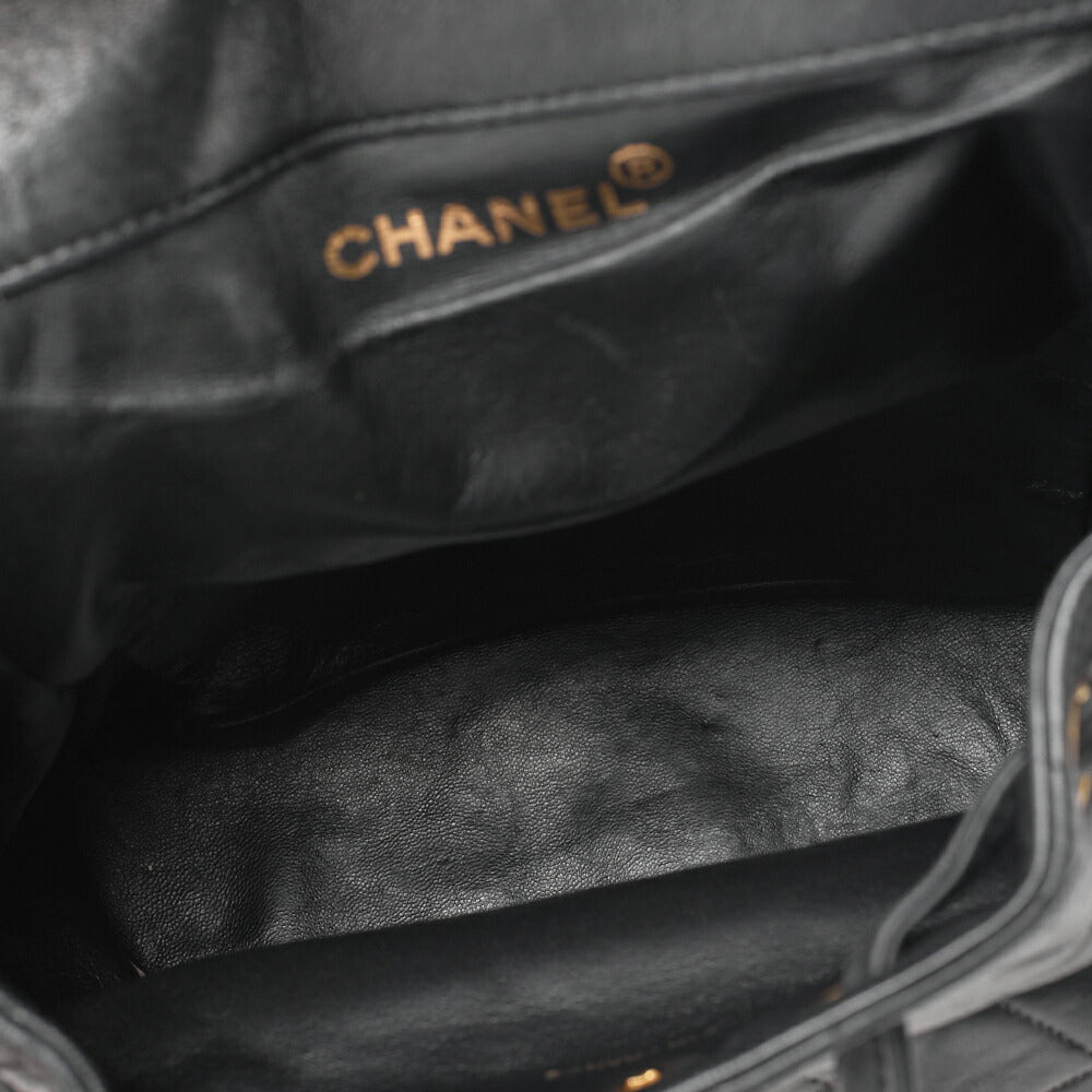 Gebrauchter Matlasse Rucksack mit Außenklappe und Drehverschluss und Kette aus Lammleder in Schwarz und Goldtönen, Gebraucht