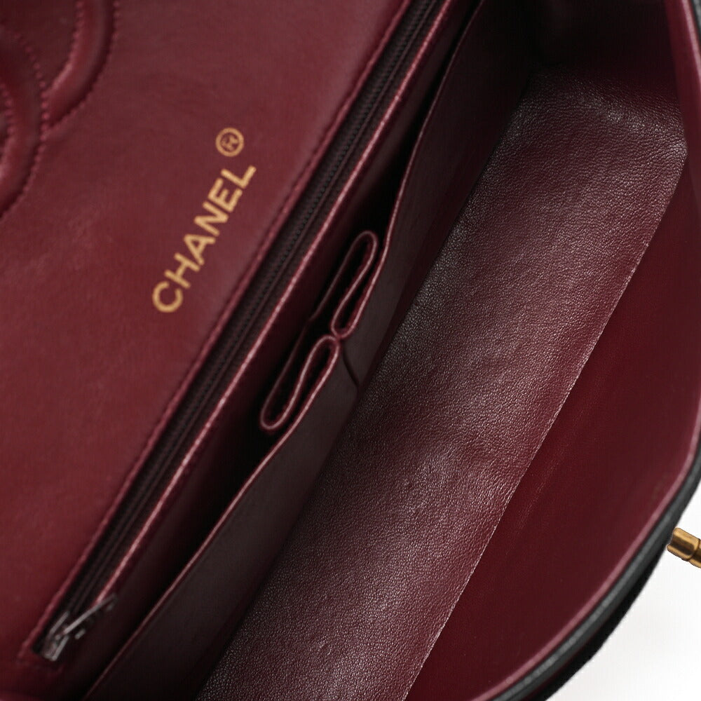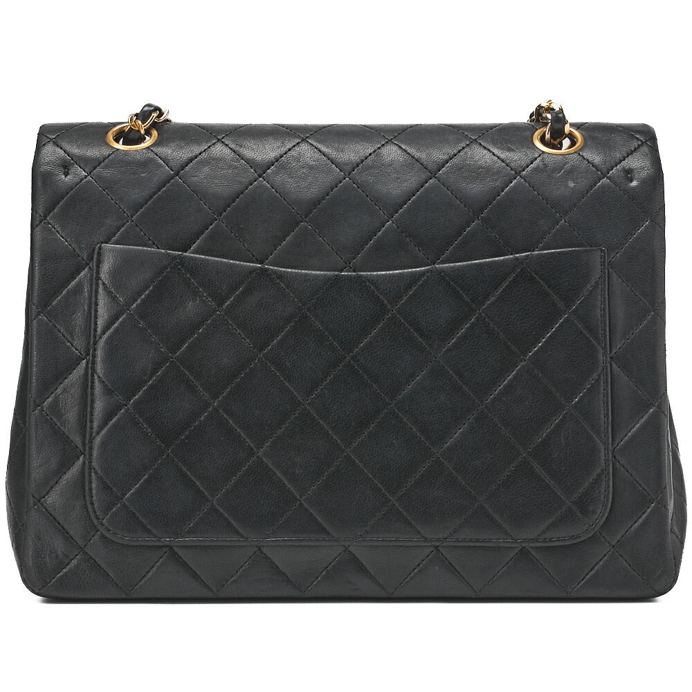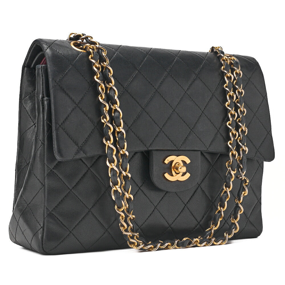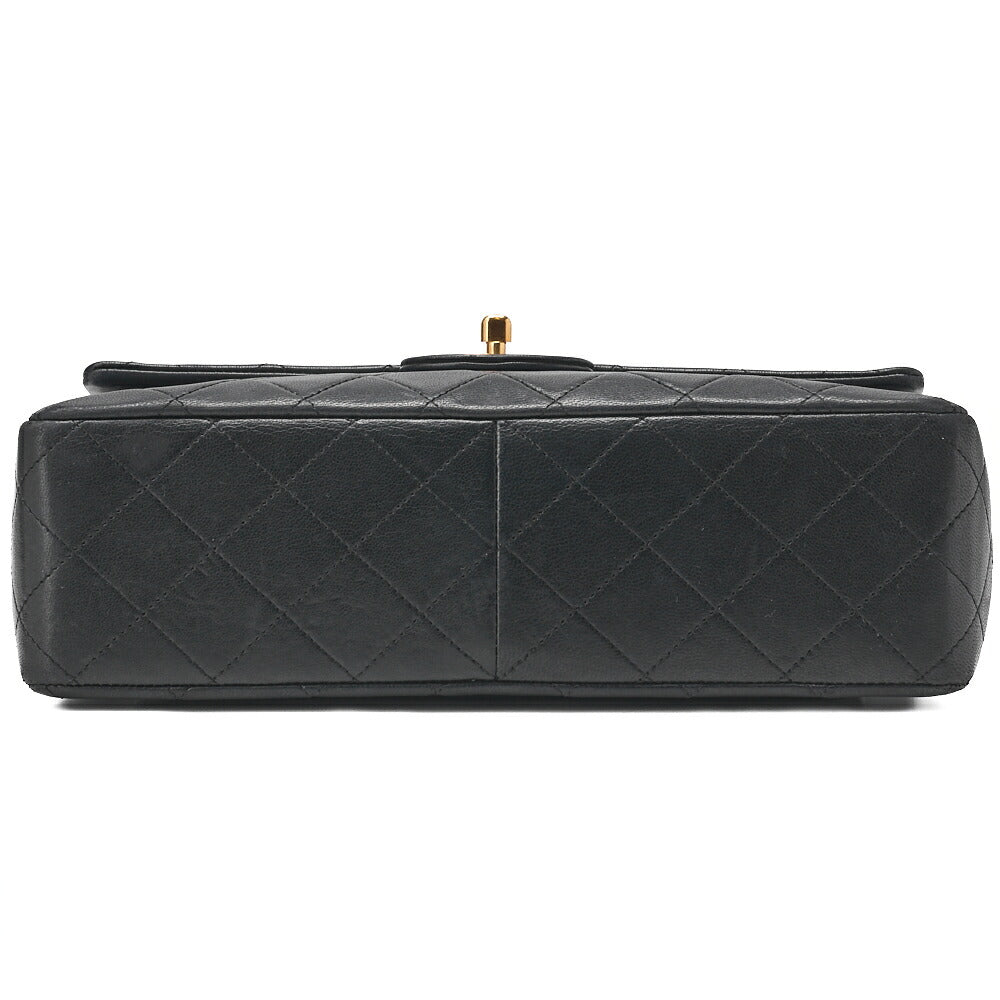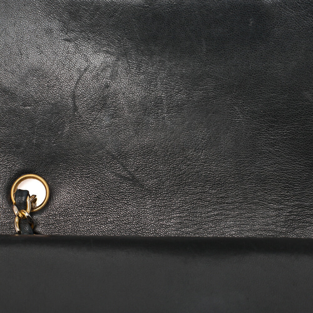 Matlassse Double Flap Chain Schultertasche aus Lammleder in Schwarz mit goldfarbenen Metallteilen, gebraucht