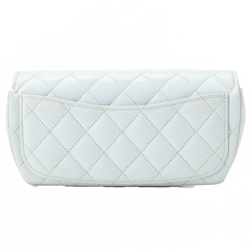 Wir präsentieren die CHANEL Matelassé Schultertasche von CHANEL , eine luxuriöse Mini-Umhängetasche , die Eleganz und Funktionalität für Ihren Alltag vereint. Dieses exquisite Stück besticht durch sein atemberaubendes hellblaues Kaviarleder und silberfarbene Beschläge und ist damit ein stilvolles Accessoire für jeden Anlass.