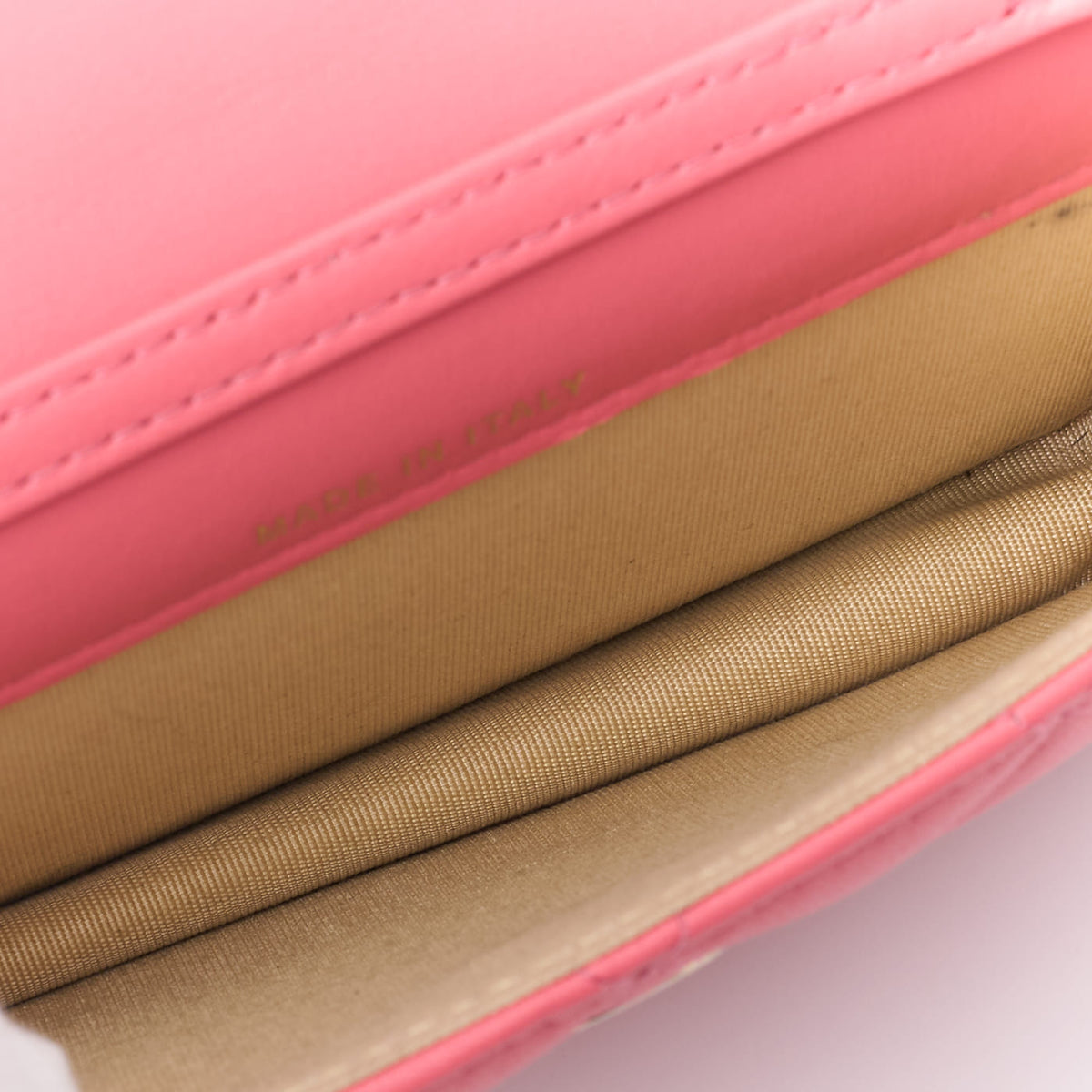 Gebrauchte Mini-Umhängetasche, Matelassé, Schulterkette, Lammleder, Rosa, goldfarbene Metallteile, gebraucht