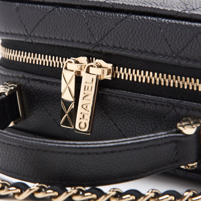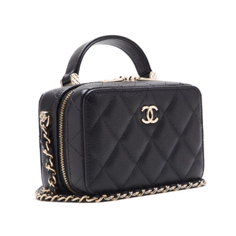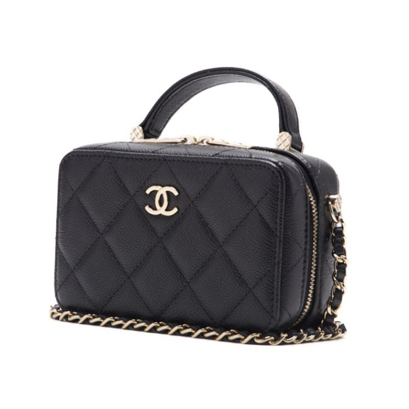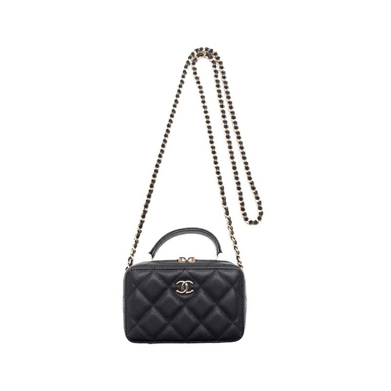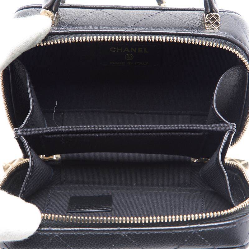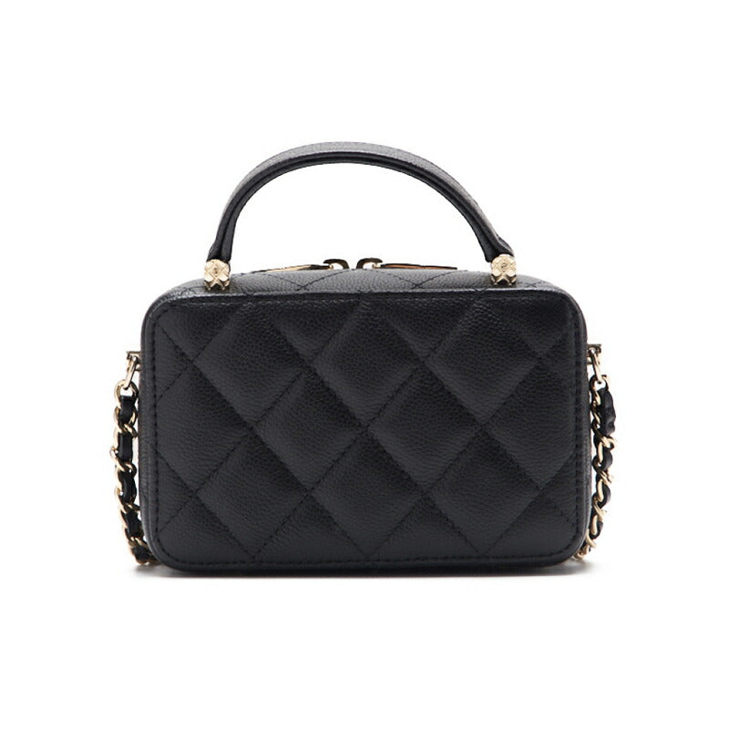 Gebrauchte Mini-Handtasche 2WAY Matelassé-Kette Schulter Caviar Skin Schwarz Goldfarbene Hardware Gebraucht