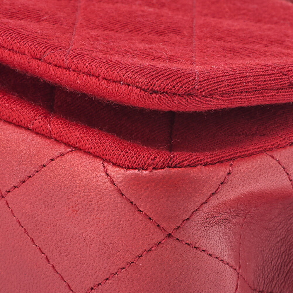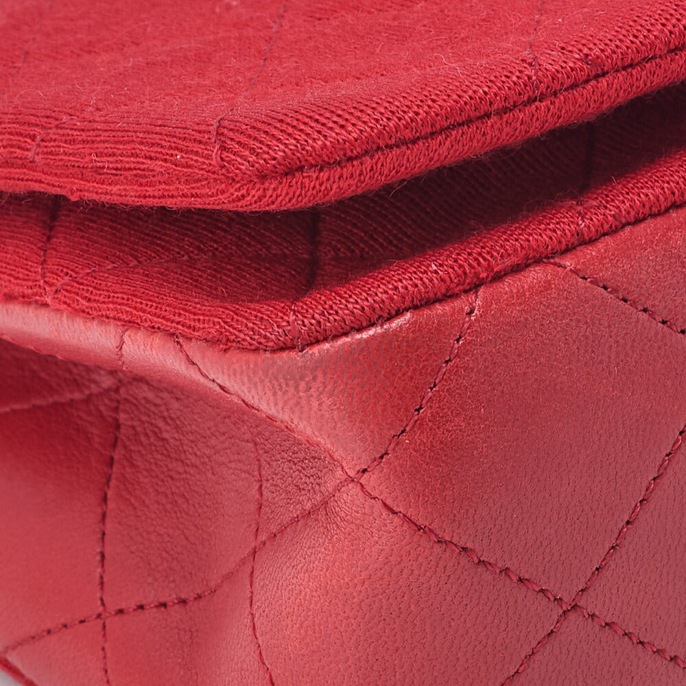 Gebrauchte Mini-Umhängetasche, Matelassé-Vollklappe, Kettenschulter, Baumwolle, Rot, goldfarbene Metallteile, gebraucht