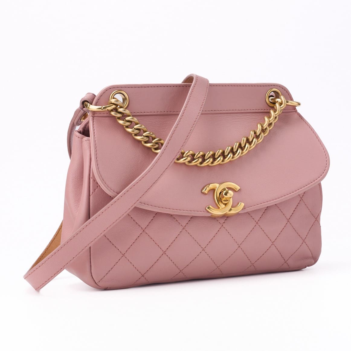 Pre-Owned Mini-Umhängetasche Matelassé Runde Klappe Kette Schulter Lammleder Rosa Goldfarbene Hardware Pre-Owned