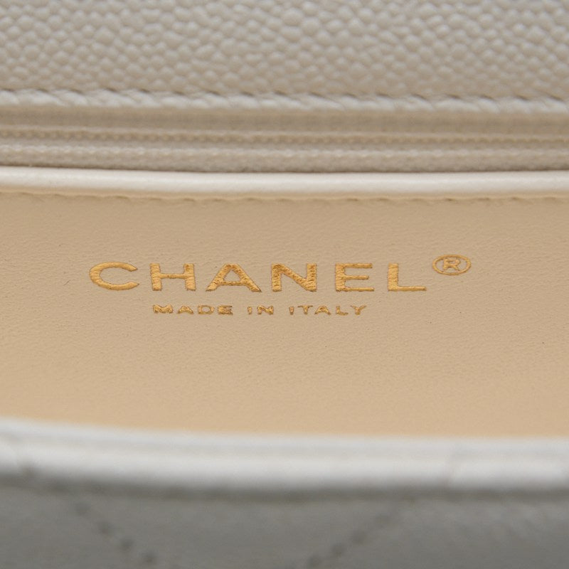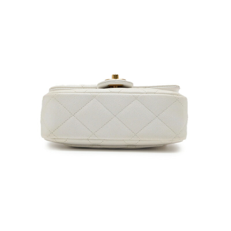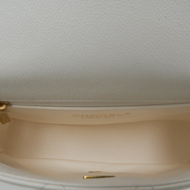 Erweitern Sie Ihre Accessoire-Auswahl mit der exquisiten CHANEL Mini Matelassé Turn Lock Chain Shoulder Bag aus luxuriösem Kaviarleder in atemberaubendem Weiß mit eleganten Goldbeschlägen. Diese Mini-Schultertasche ist nicht nur ein Statement-Stück, sondern ein vielseitiger Begleiter für jeden Anlass – egal, ob Sie sich für einen Abend schick machen oder Ihrem Freizeit-Outfit das gewisse Etwas verleihen.