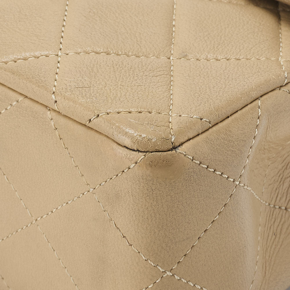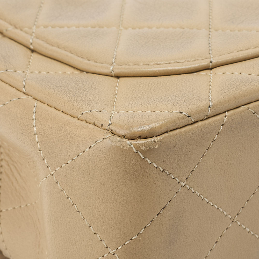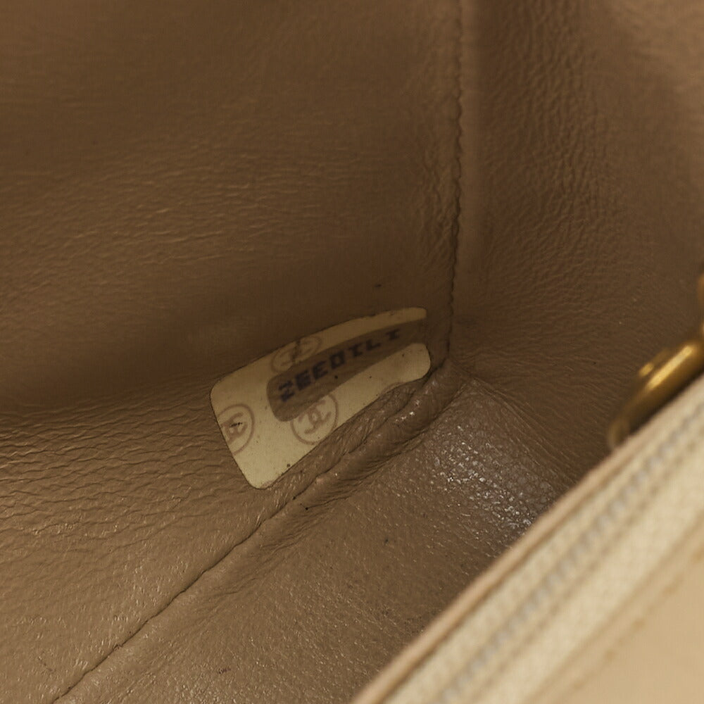 Pre-Owned Mini Schultertasche Matelassé Drehverschluss Kette Lammleder Beige Goldfarbene Hardware Pre-Owned