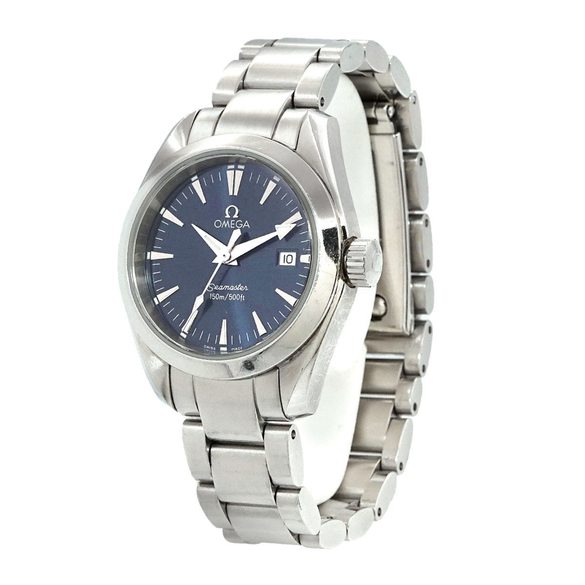 Gebrauchte OMEGA Seamaster Aqua Terra 2577 80 Damenuhr Datum Marineblau Quarz