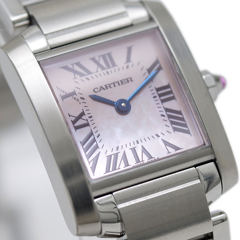 Pre-Owned Cartier Tank Fran?aise SM Pink Shell Dial Stainless Steel Quartz Watch W51028Q3