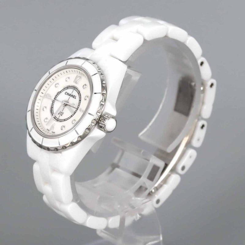 Pre-Owned CHANEL J12 29mm H2570 Women's Watch with 8 Diamonds, White Shell, Ceramic, and Quartz Movement