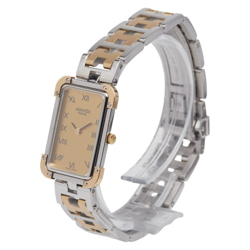 Pre-Owned Herm?s Cloiseur Watch CR1.220 Quartz Gold Dial Stainless Steel Plated Women's HERMES