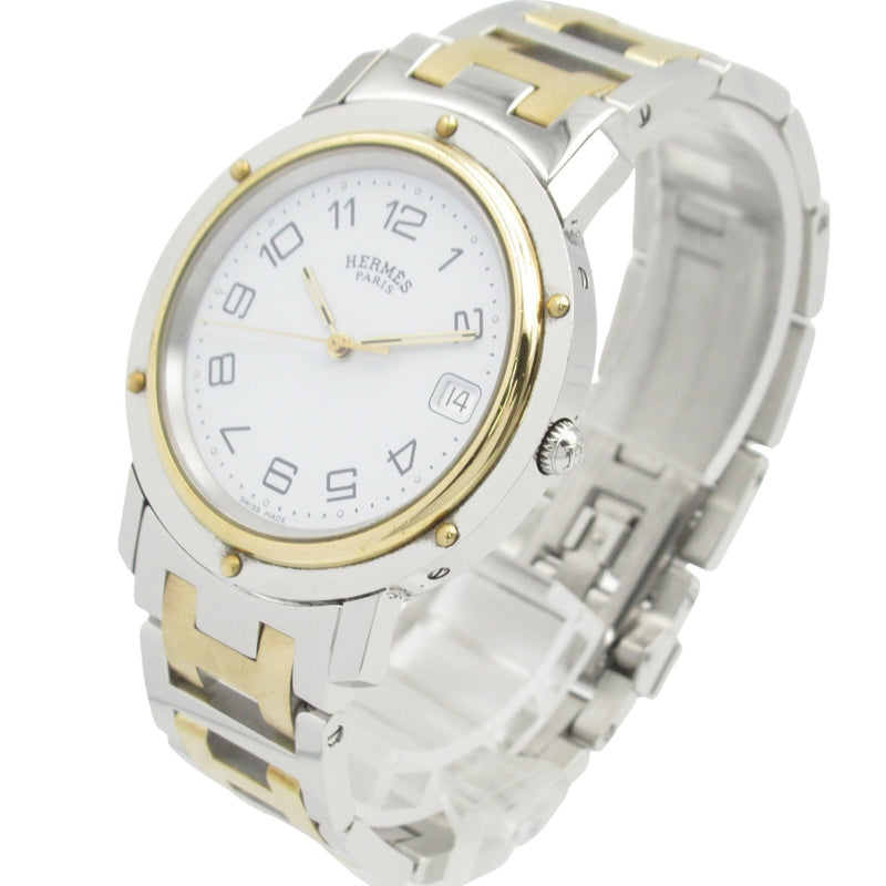 Pre-Owned Herm?s Clipper Watch, Two-Tone, Gold-Plated Stainless Steel, Quartz Movement, Analog Display, White Dial, Unisex, CL3.440