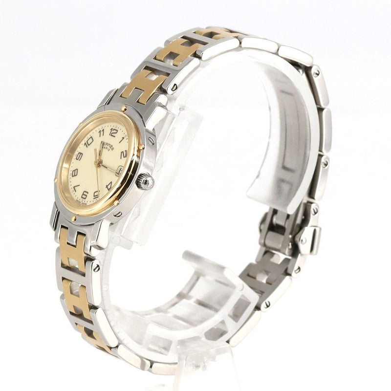 Pre-Owned HERMES Clipper Gold Plated Steel Quartz Ladies Watch CL4.220 Polished