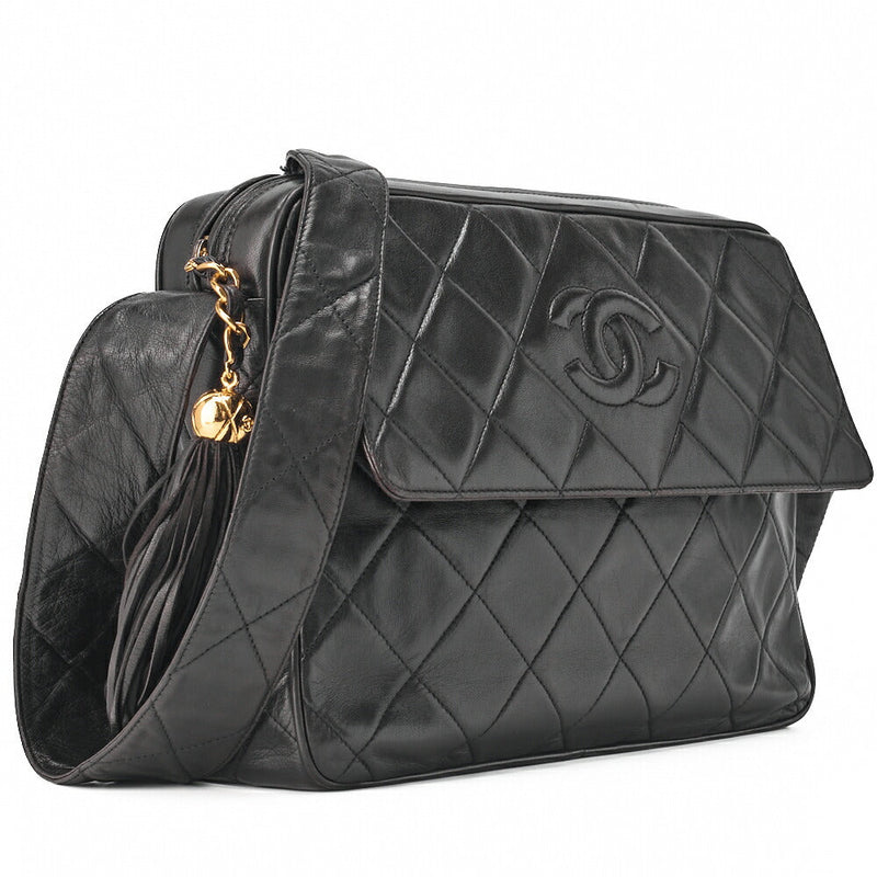 Gebrauchte Matlasse Coco Mark Fransenkette Schultertasche Lammleder Schwarz Goldfarbene Hardware, Gebraucht
