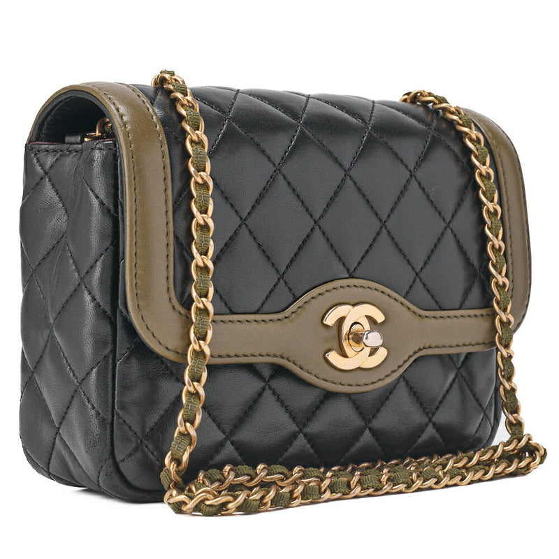 Pre-Owned Mini Matelassé Turnlock Chain Shoulder Bag Lambskin Bicolor Gold-Tone Hardware, Pre-Owned