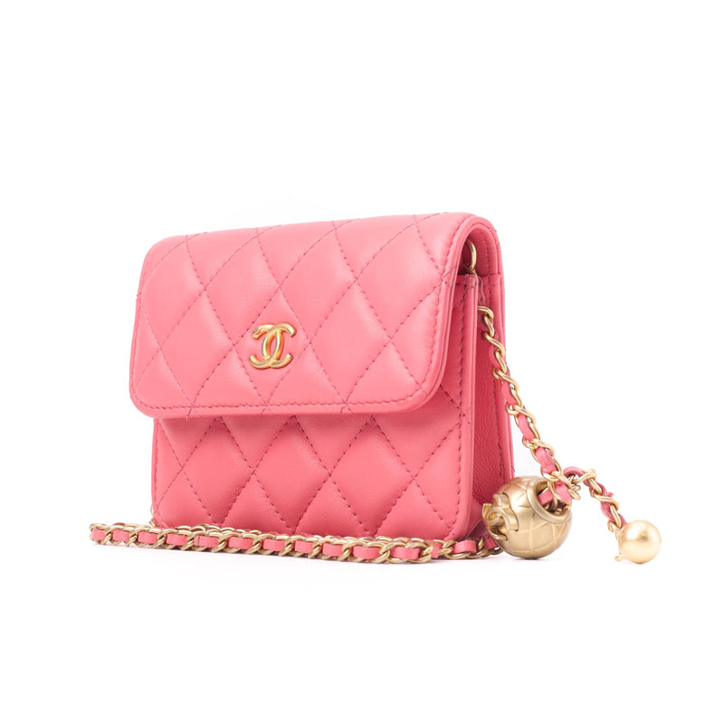 Pre-Owned Mini-Umhängetasche Matelassé Runde Klappe Kette Schulter Lammleder Rosa Goldfarbene Hardware Pre-Owned