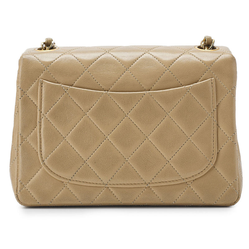 Pre-Owned Mini Schultertasche Matelassé Drehverschluss Kette Lammleder Beige Goldfarbene Hardware Pre-Owned
