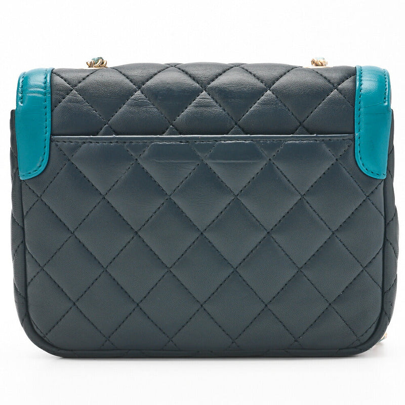 Pre-Owned Mini Schultertasche Matelassé Drehverschluss Lammleder Navy Goldfarbene Hardware Pre-Owned
