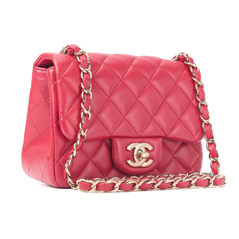 Pre-Owned Mini-Umhängetasche, Matelassé, Drehverschluss, Lammleder, Rot, Goldfarbene Metallteile, Pre-Owned