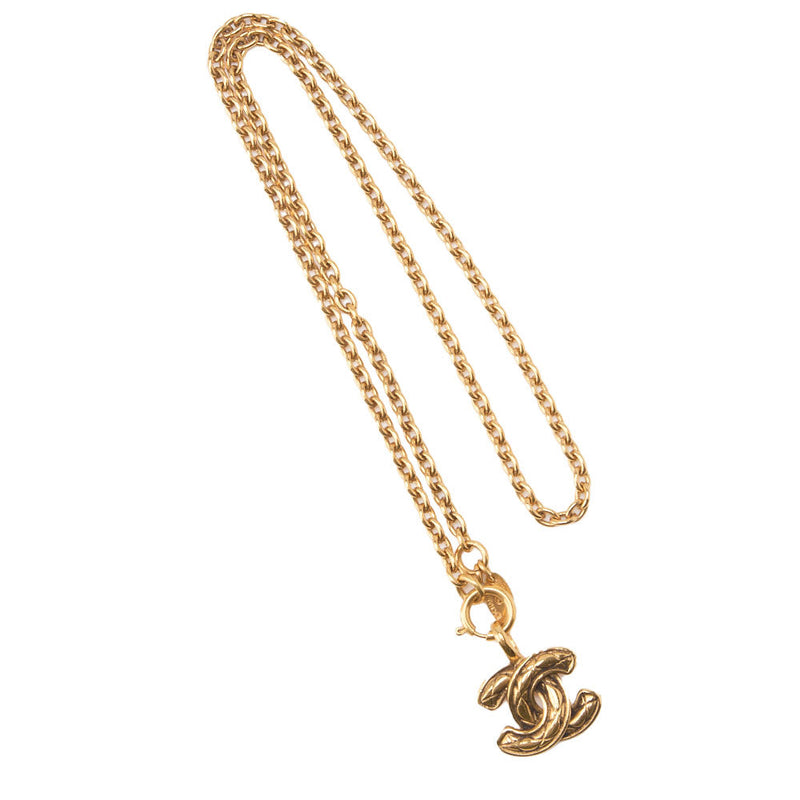 Pre-Owned Halskette, Coco Mark Matelasse, Vergoldet, Gold, Goldfarbene Hardware, Pre-Owned