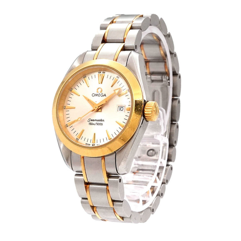 Gebrauchte OMEGA Seamaster Aqua Terra Combi 2377 30 Damenuhr Datum Silber YG Gelbgold Quarz