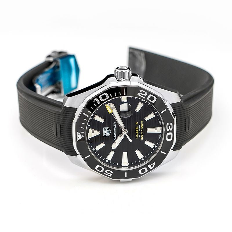 Aquaracer 43 mm, schwarzes Zifferblatt aus Edelstahl, WAY201A.FT6142