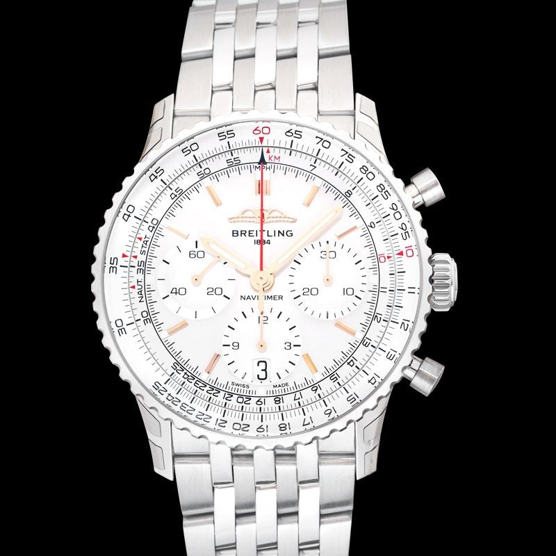 Navitimer 41 mm silberfarbenes Zifferblatt aus Edelstahl AB0139211G1A1
