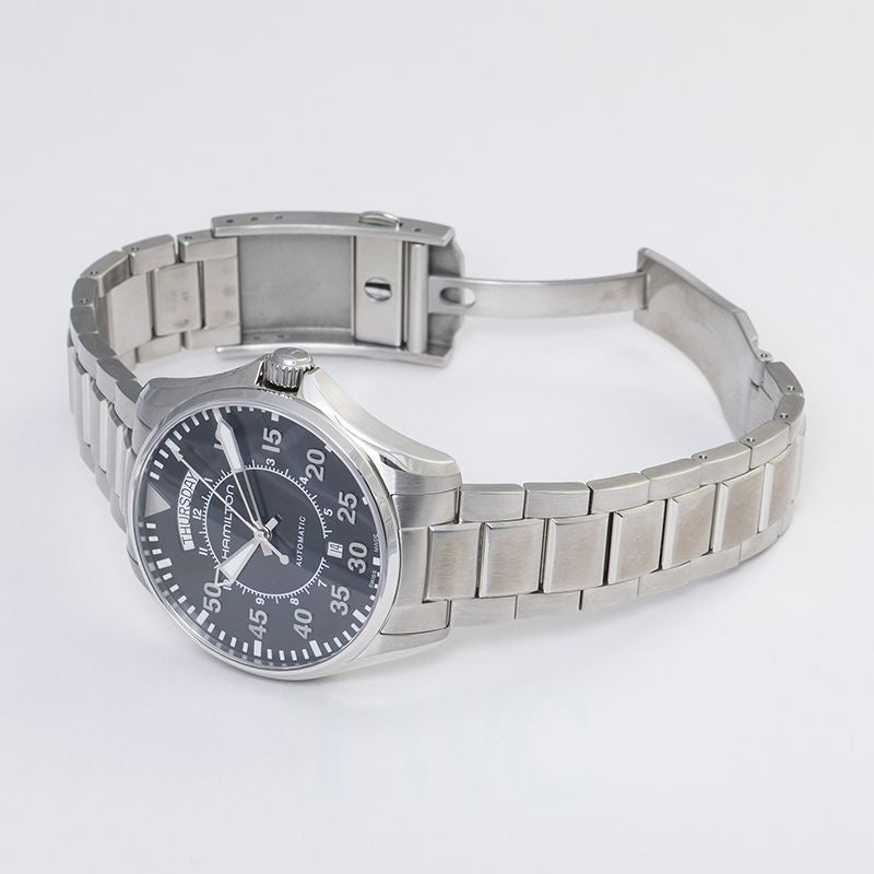 Khaki Aviation 42 mm schwarzes Zifferblatt aus Edelstahl H64615135