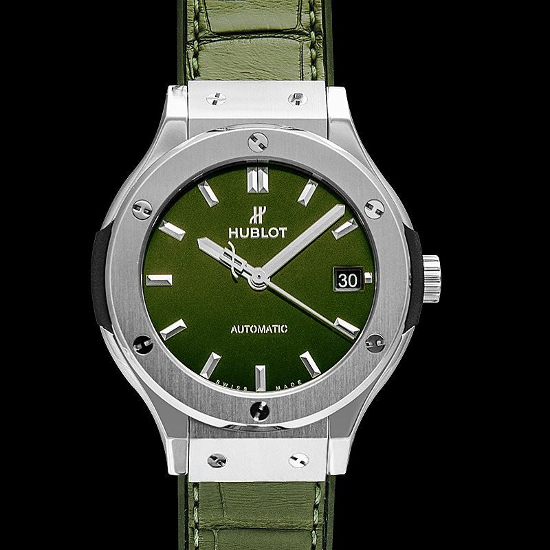 Classic Fusion 38 mm grünes Zifferblatt aus Titan 565.NX.8970.LR