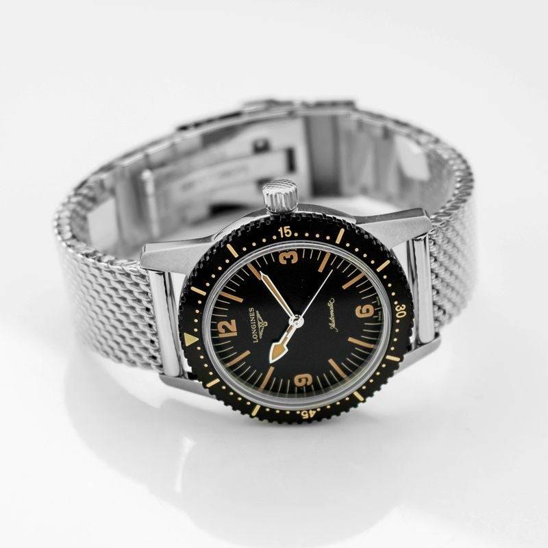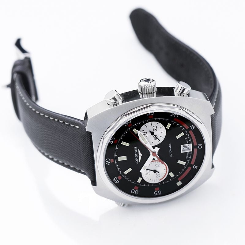 Longines Heritage 43 mm schwarzes Zifferblatt aus Edelstahl L27964520