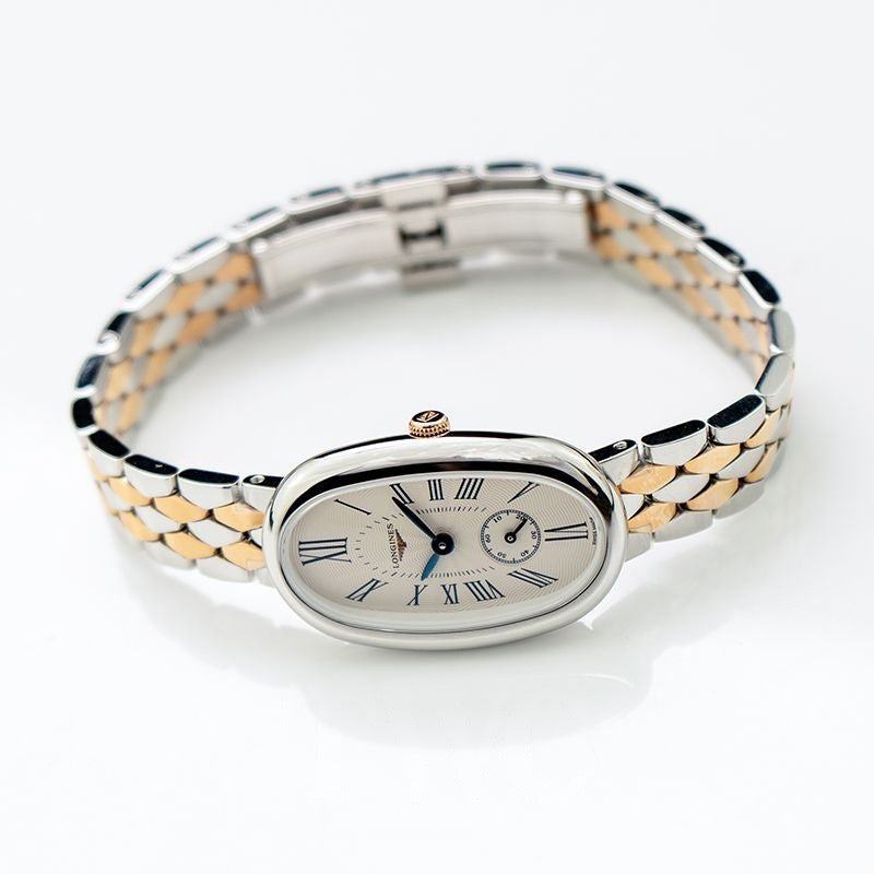 Longines Symphonette 21,90 x 34,00 mm, silbernes „Flinqu?“-Zifferblatt aus Edelstahl mit Krone aus 18 Karat Rotgold, L23065717