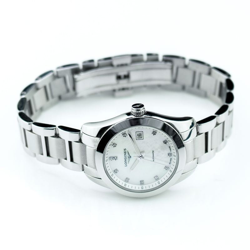 Conquest Classic 29,5 mm weißes Perlmuttzifferblatt aus Edelstahl L22854876