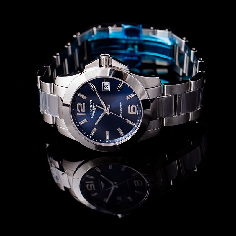 Longines Conquest – 34,00 mm, blaues Zifferblatt mit Sonnenschliff, Edelstahl L33774966