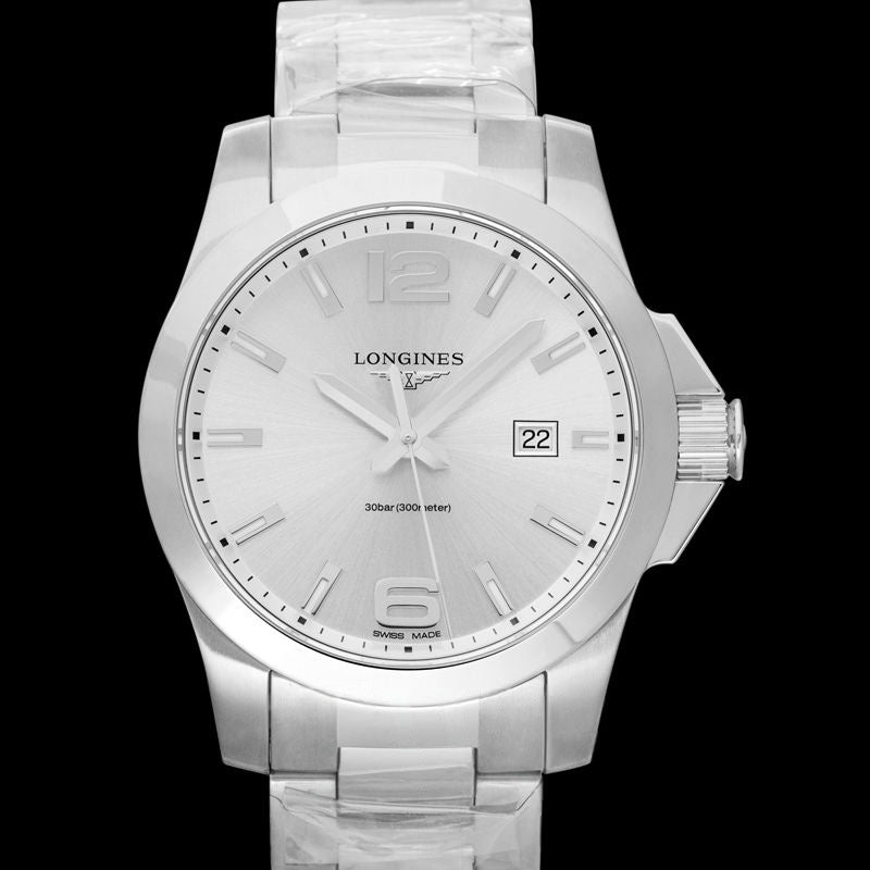 Longines Conquest 43 mm silbernes Zifferblatt aus Edelstahl L37604766