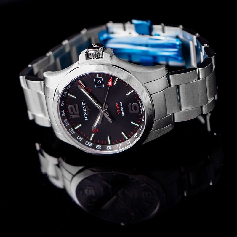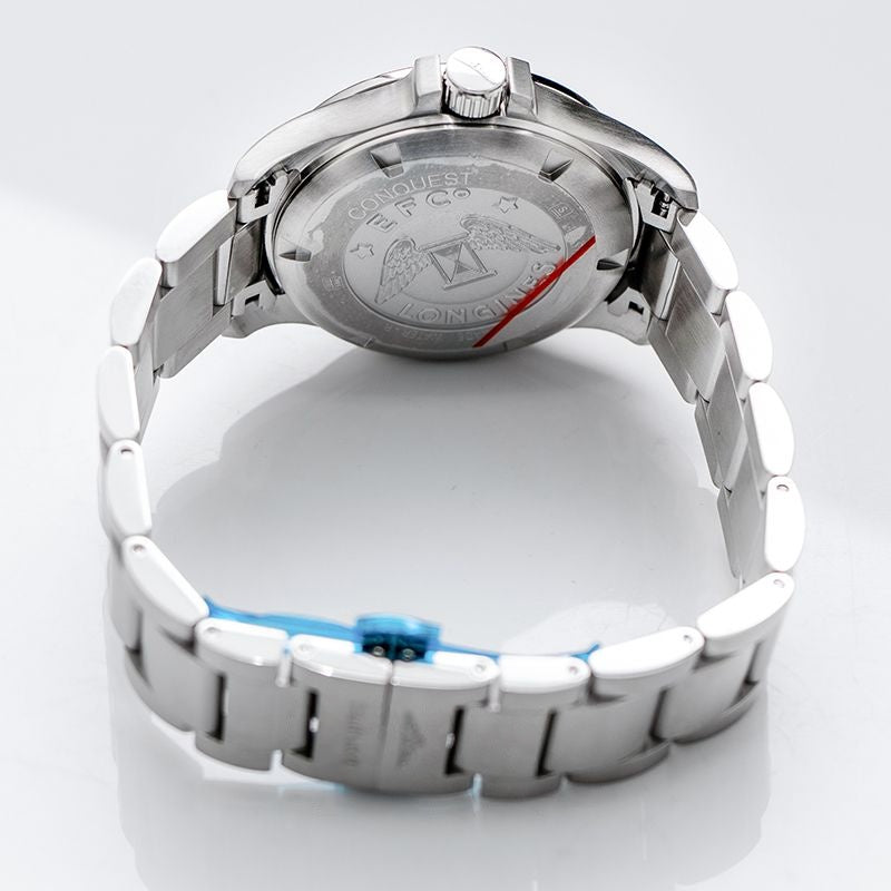 Longines Conquest – 41,00 mm, schwarzes Zifferblatt mit geschnitztem Muster, Edelstahl L37184566